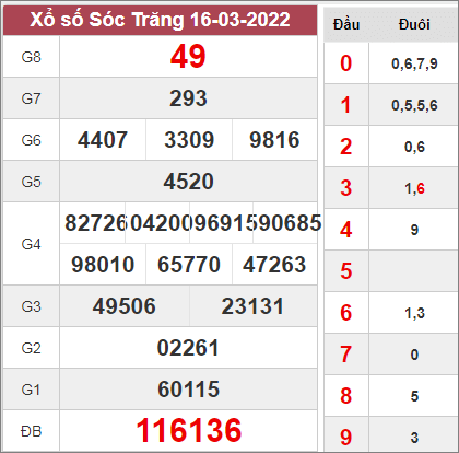 Và sau đây, TK Cầu về nhiều nháy XSST Kết quả lần quay thưởng trước 16/03 như sau: